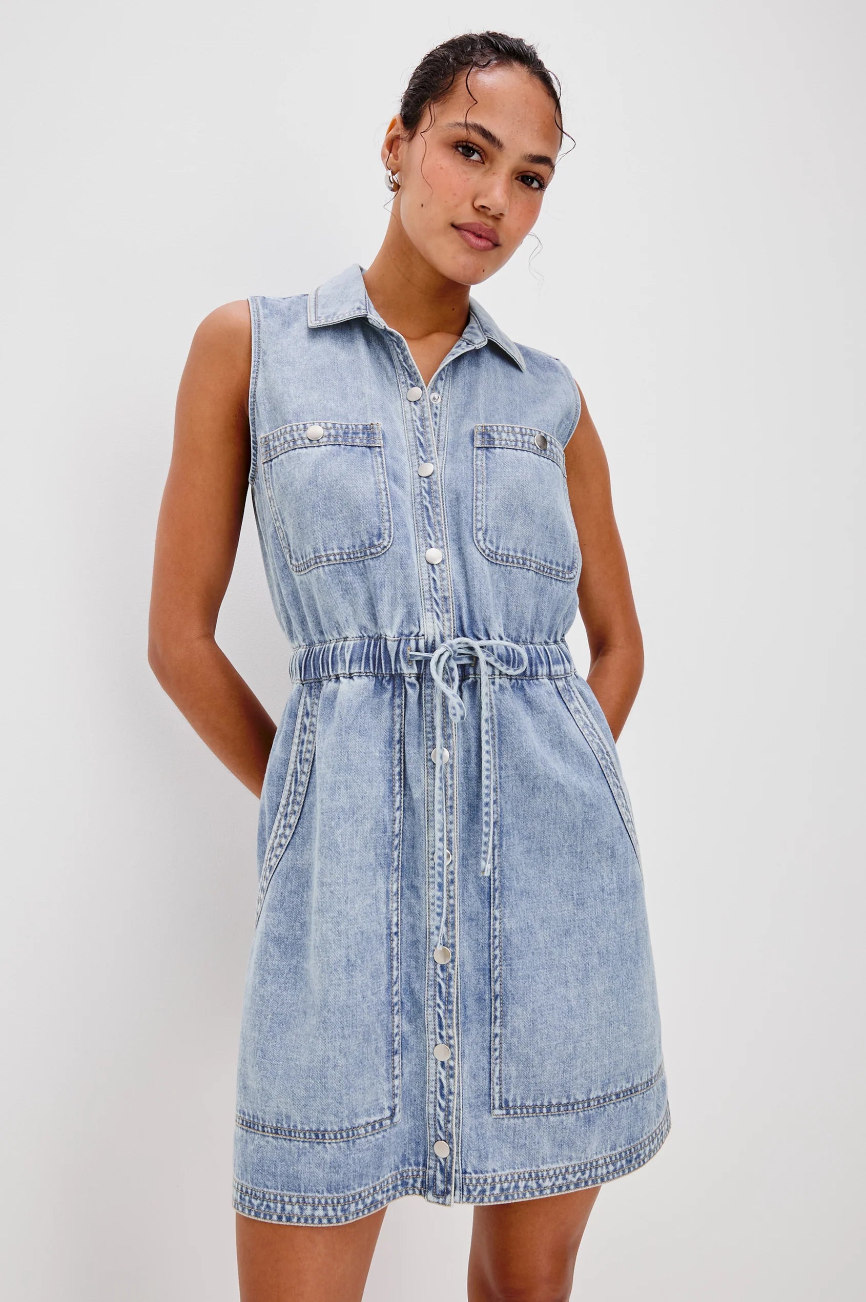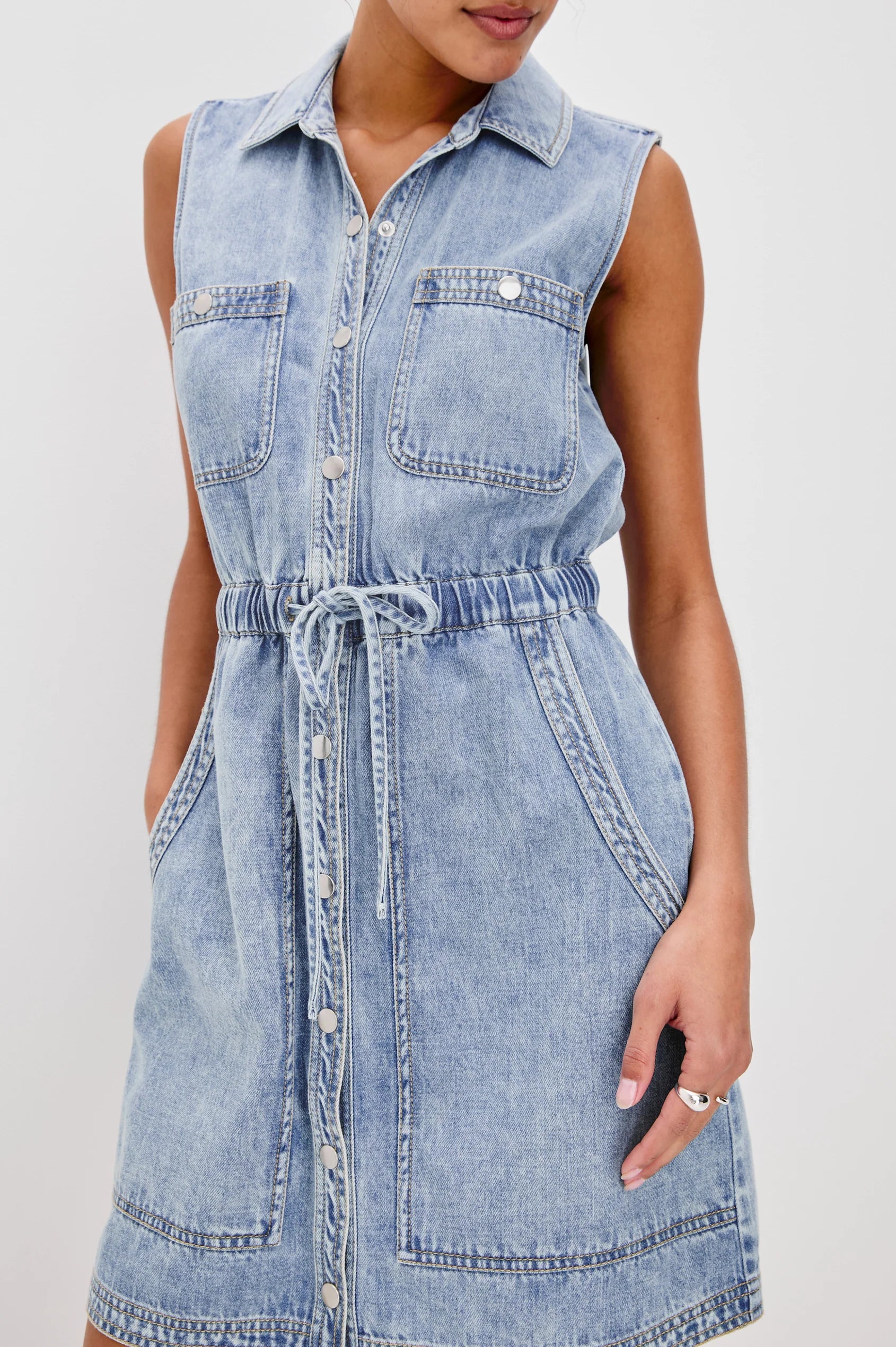 Your dream mini dress in denim. Made from a super-soft cotton blend, the Erica features a classic fit with a drawstring waist, snap closures, and roomy pockets.