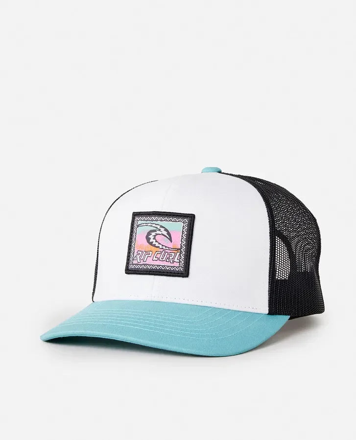 The Custom Curve Trucker hat from Rip Curl features a woven Rip Curl badge on the front, a structured 6 panel design, and adjustable snapback closure. Made from 60% cotton / 40% polyester. One size fits most.