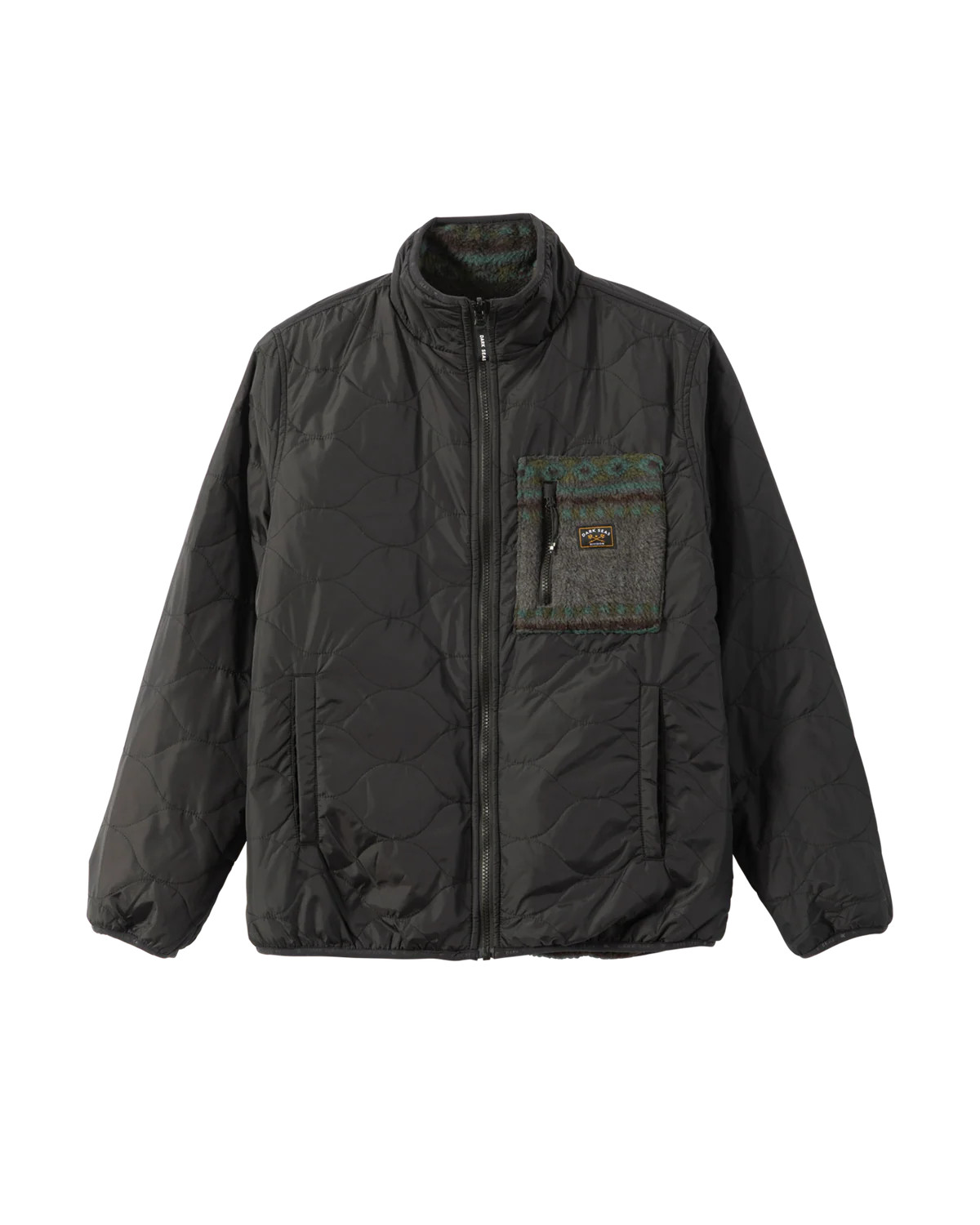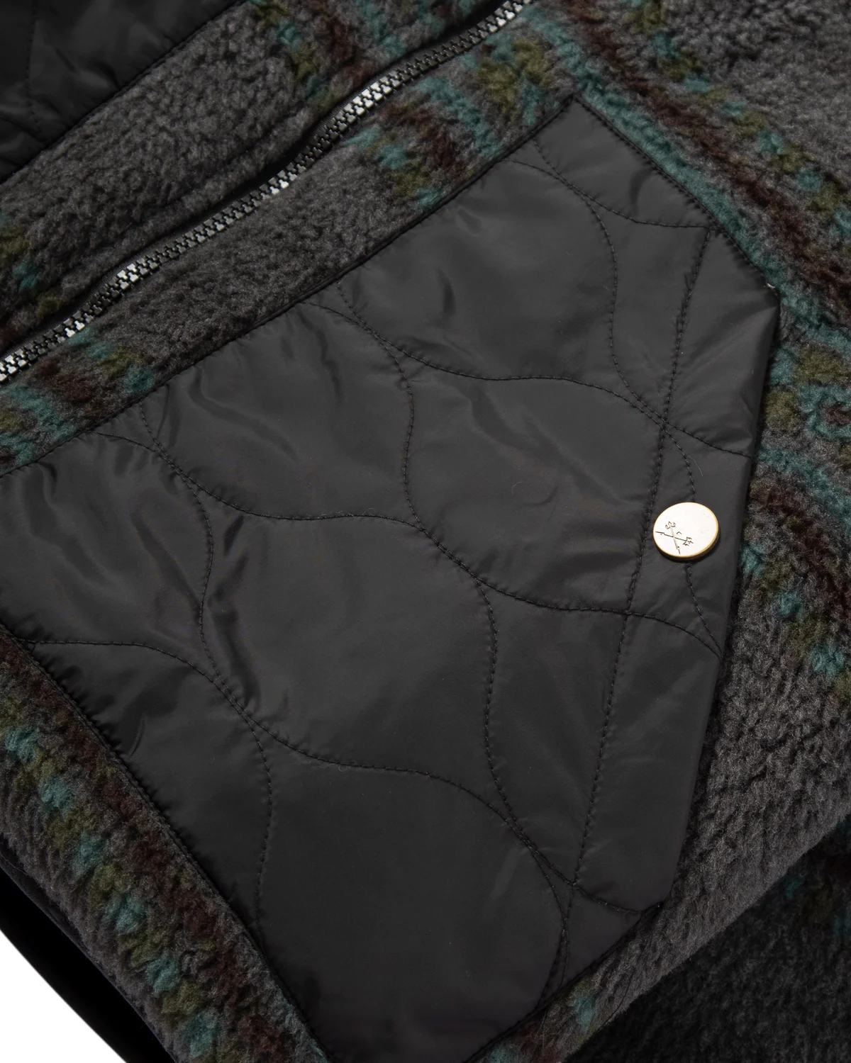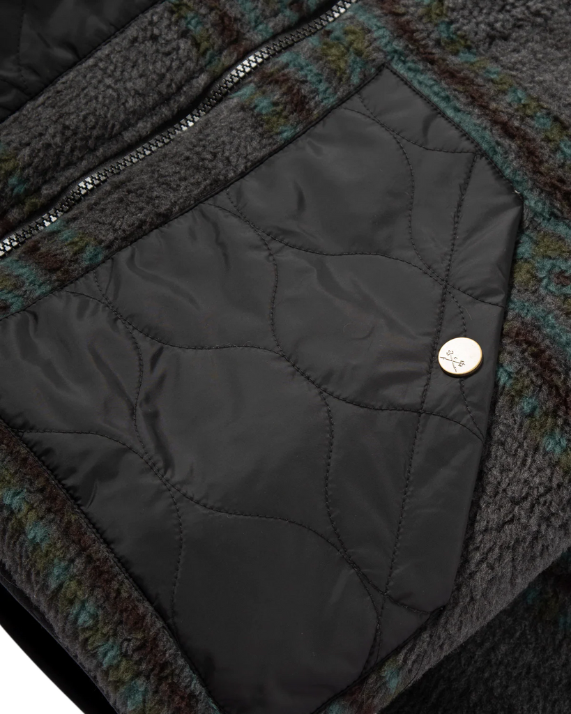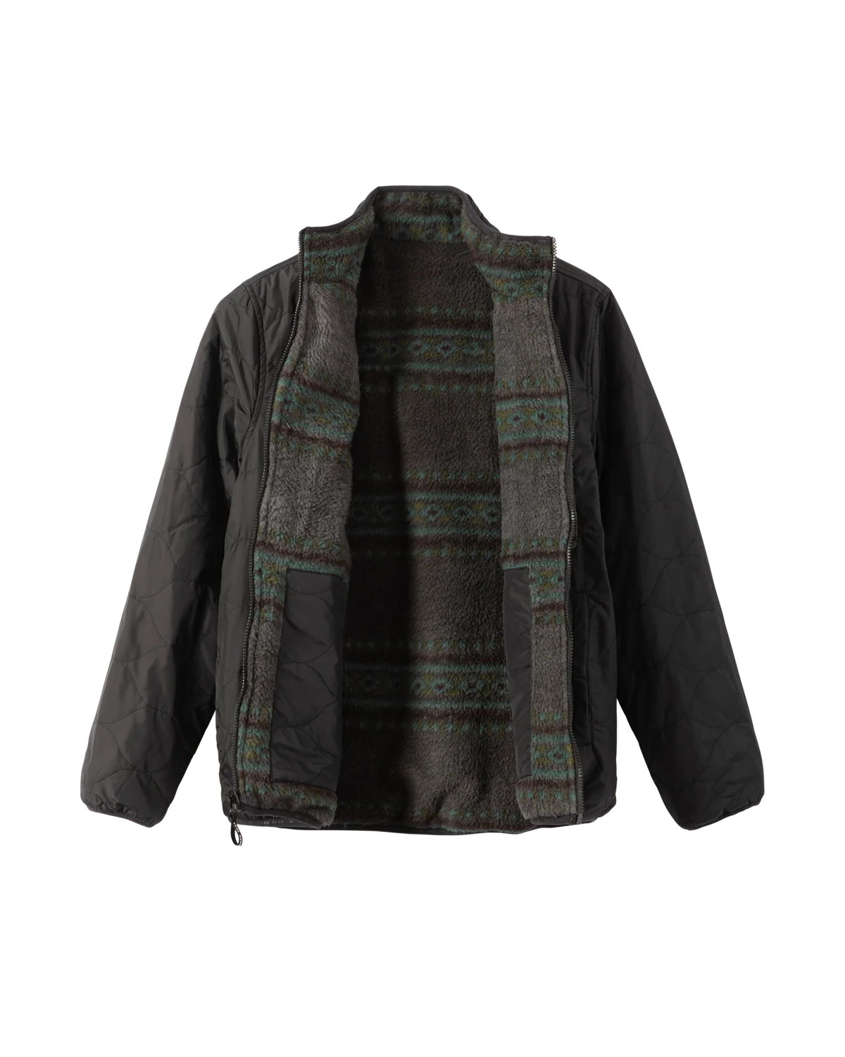 - Reversible quilted mock neck nylon jacket with printed sherpa lining