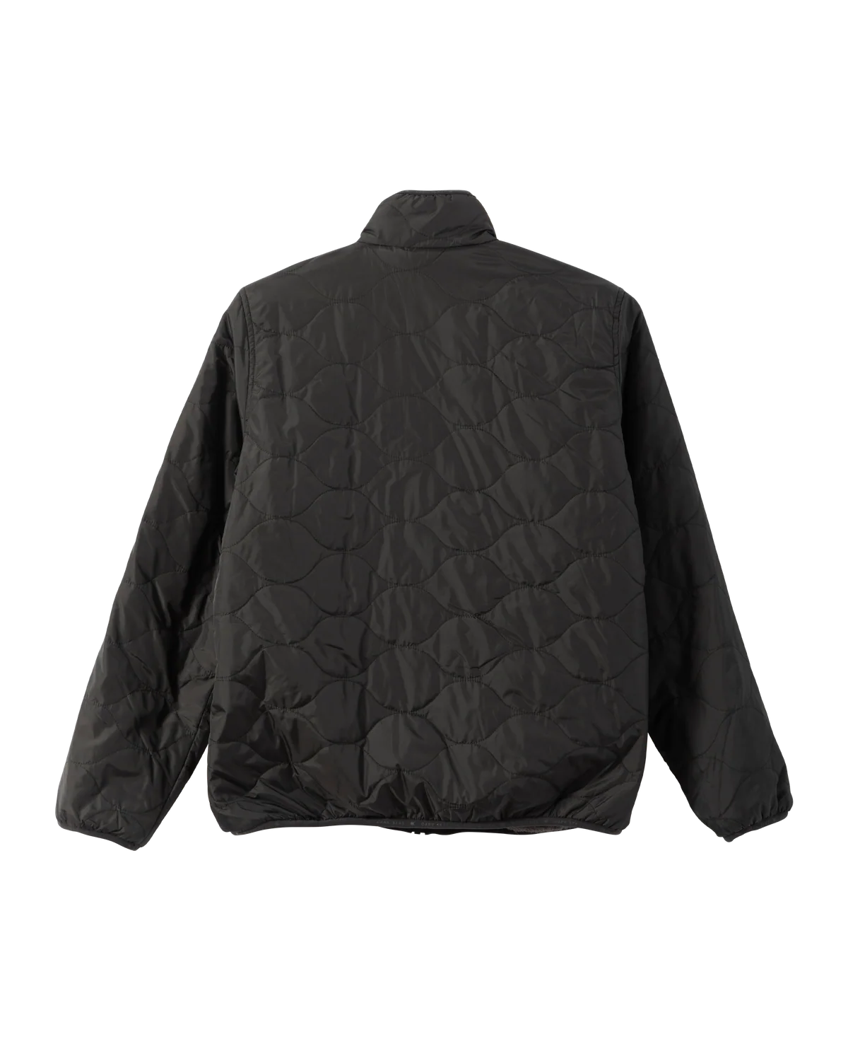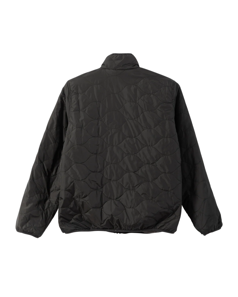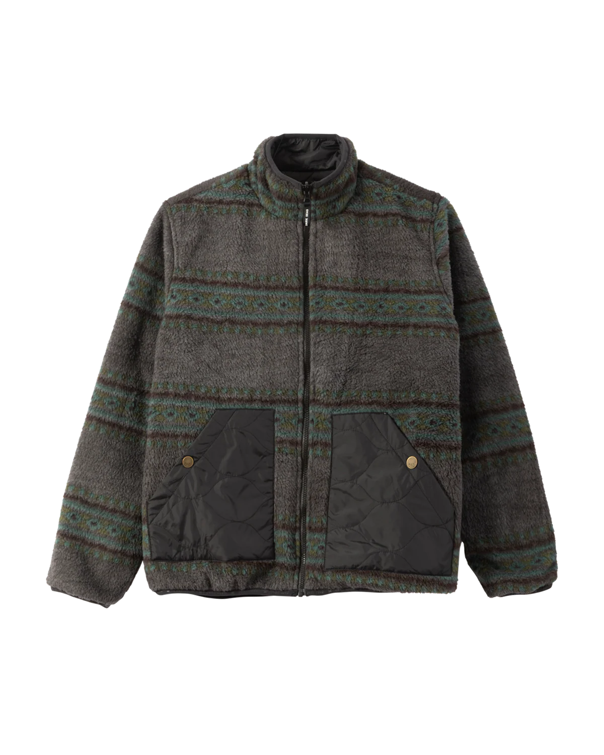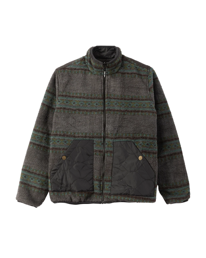 - Reversible quilted mock neck nylon jacket with printed sherpa lining