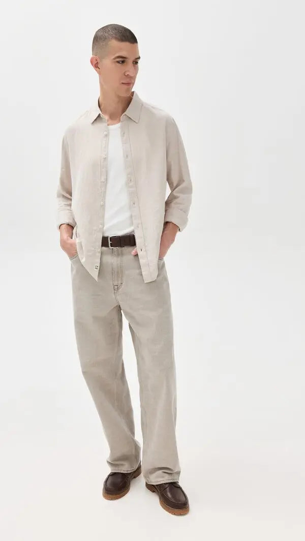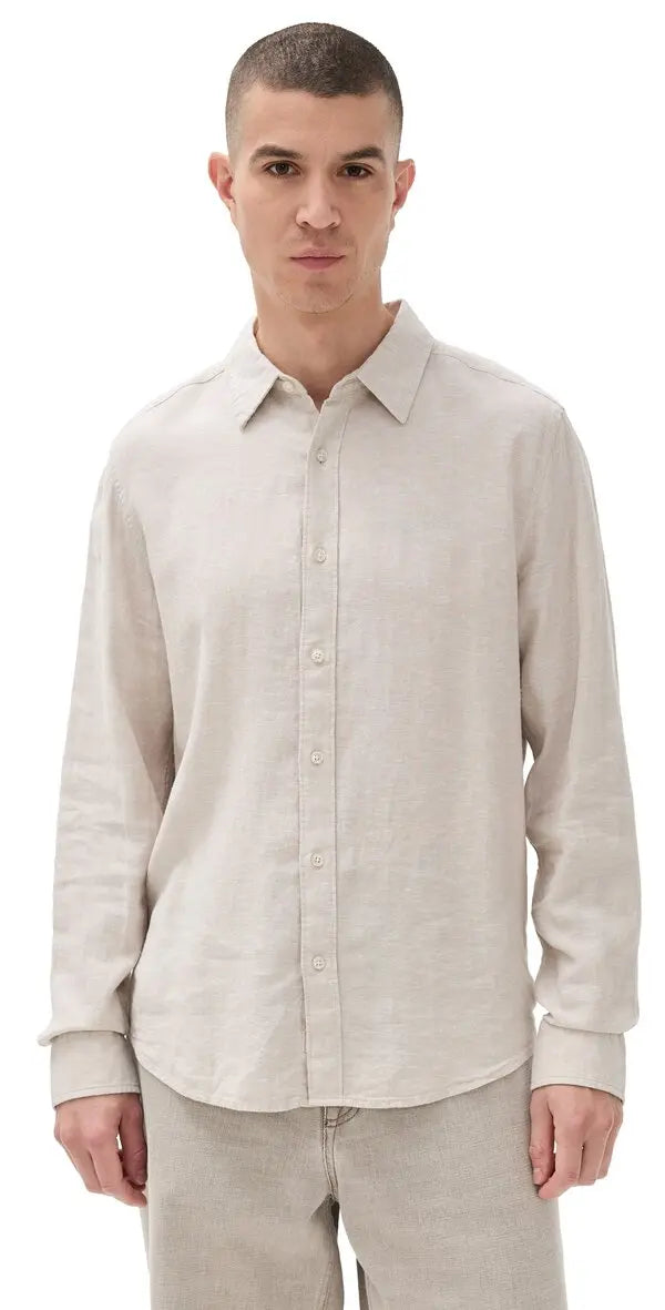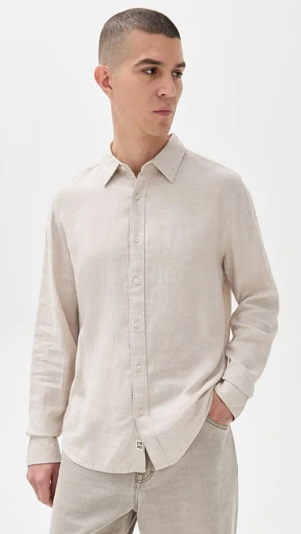 Fabric: Mid-weight, non-stretch linen weave. Point collar. Long sleeves with button cuffs. Button placket. Shell: 55% linen/45% viscose. Wash cold. Imported, Cambodia. Measurements: Measurements from size M Length: 28.75in / 73cm Sleeve: 33.75in / 86cm Chest: 42.5in / 108cm