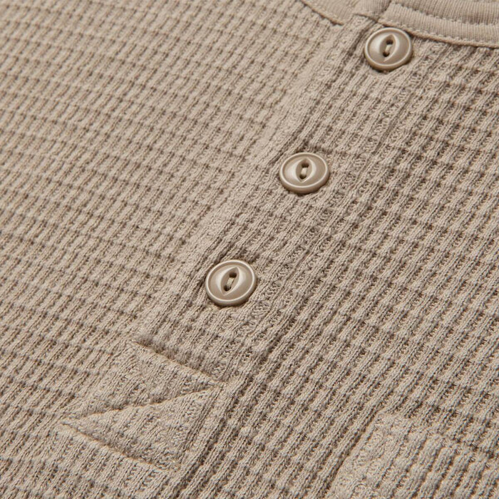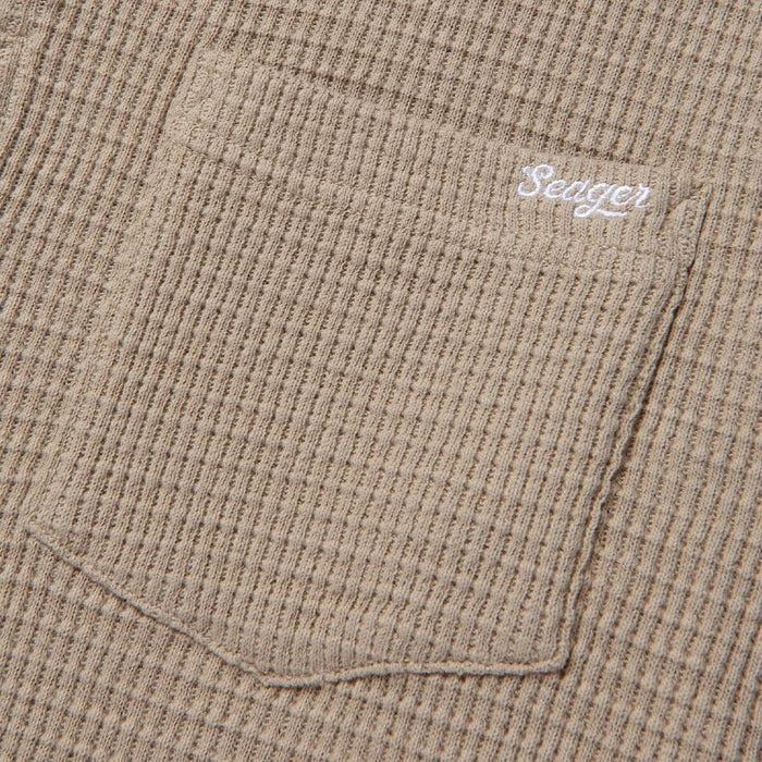The Sawpit Henley Thermal is a piece we take to heart at Seager. When we set out to craft our own, we spared no detail and held nothing back. This 100% Cotton Slub Waffle Knit Henley is made to be a true workhorse, built with heavy-duty construction yet soft enough to wear on its own. Whether worn as a rugged overshirt or just on its own, this versatile layer has quickly earned its place as a seasonal favorite. The perfect blend of durability and everyday comfort.