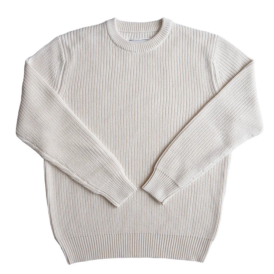 The first fisherman's sweaters made from a soft blend of recycled oyster shells, recycled water bottles, and cotton. Inspired by vintage style and classic comfort, these garments boast thick ribbed cuffs and collars to promote thermal regulation and warmth for windy days among the great outdoors.