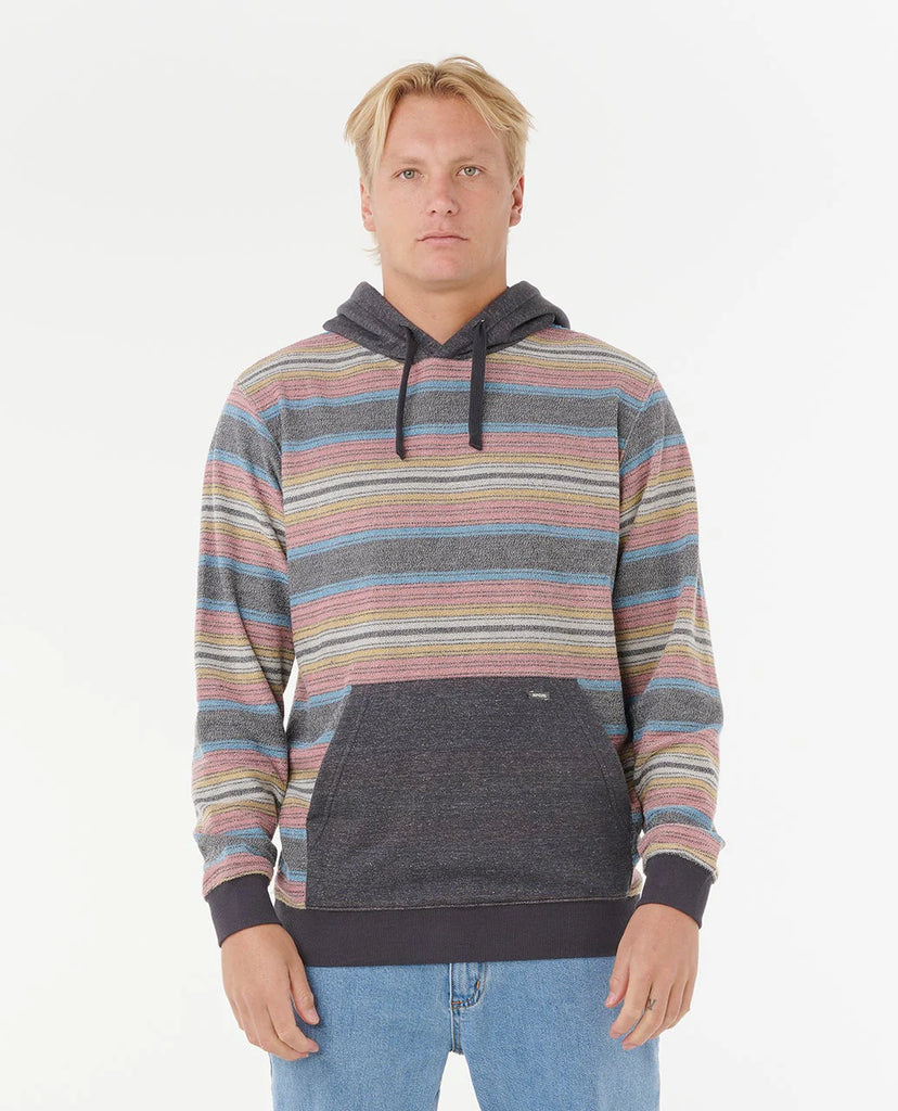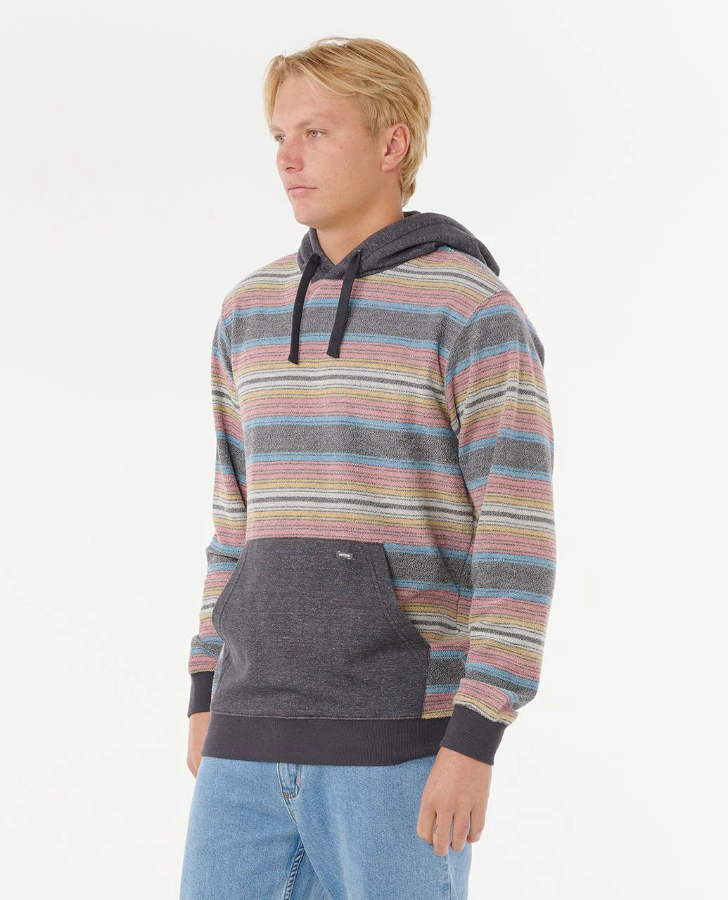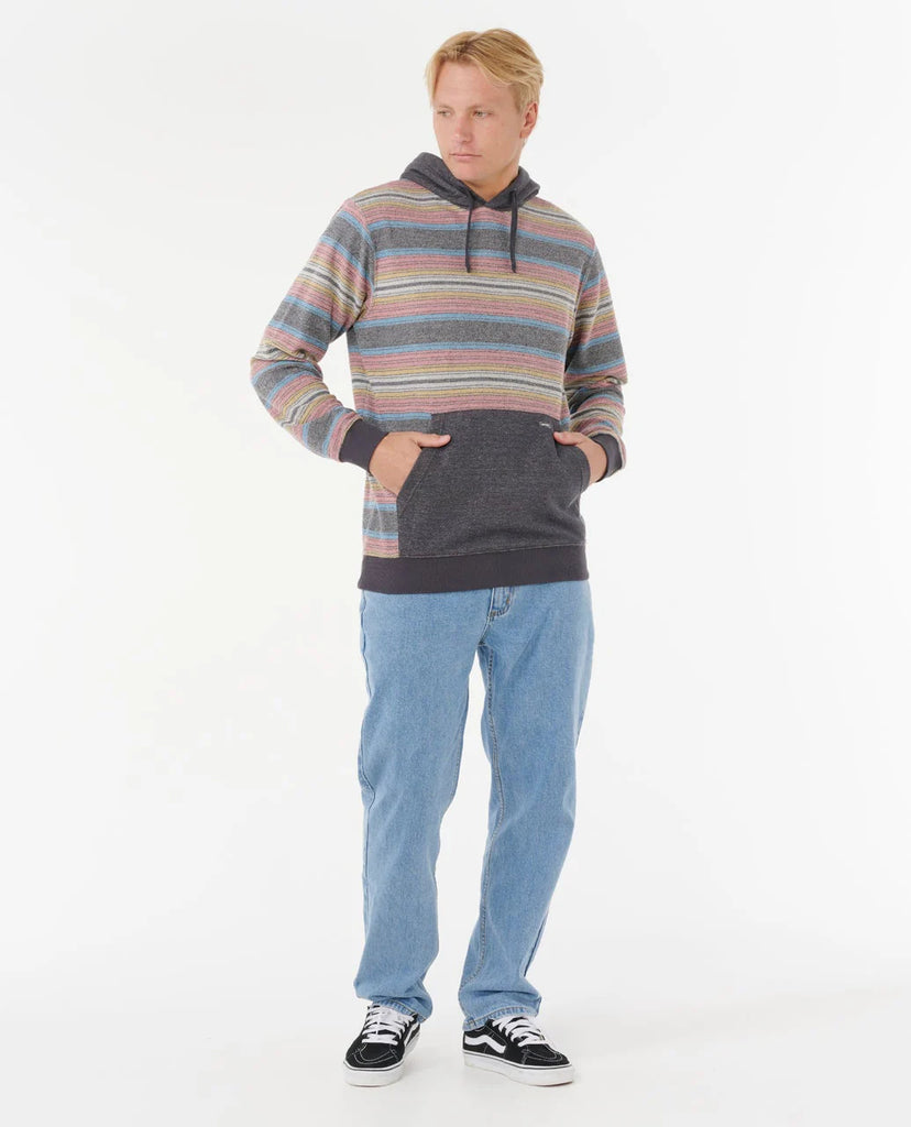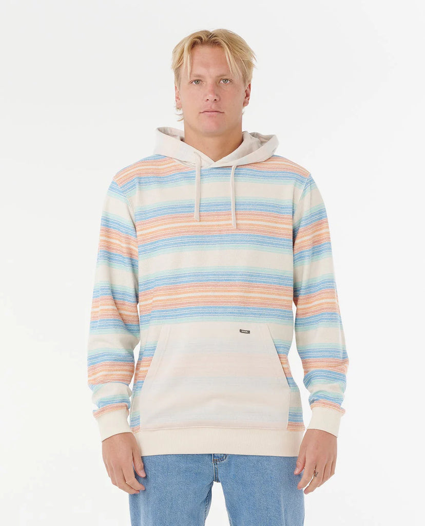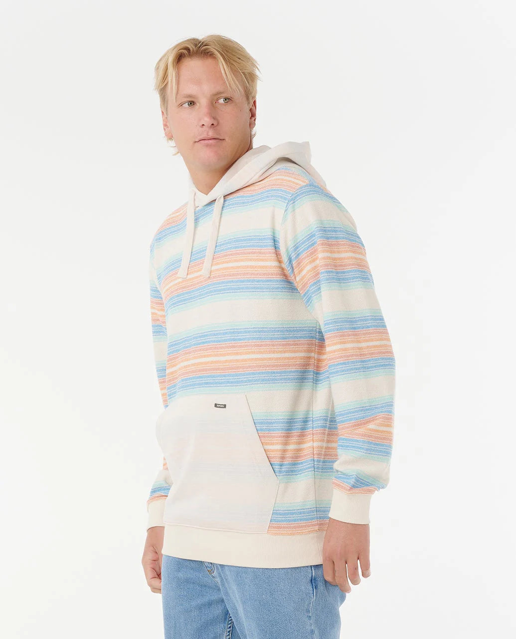 The Surf Revival Heritage Hood features soft Yd Reverse Terry 285G fabric and a standard fit, finished with a reverse yarn dye stripe and ribbed trims. A kangaroo pocket and woven label round out this timeless piece for cooler beach days.