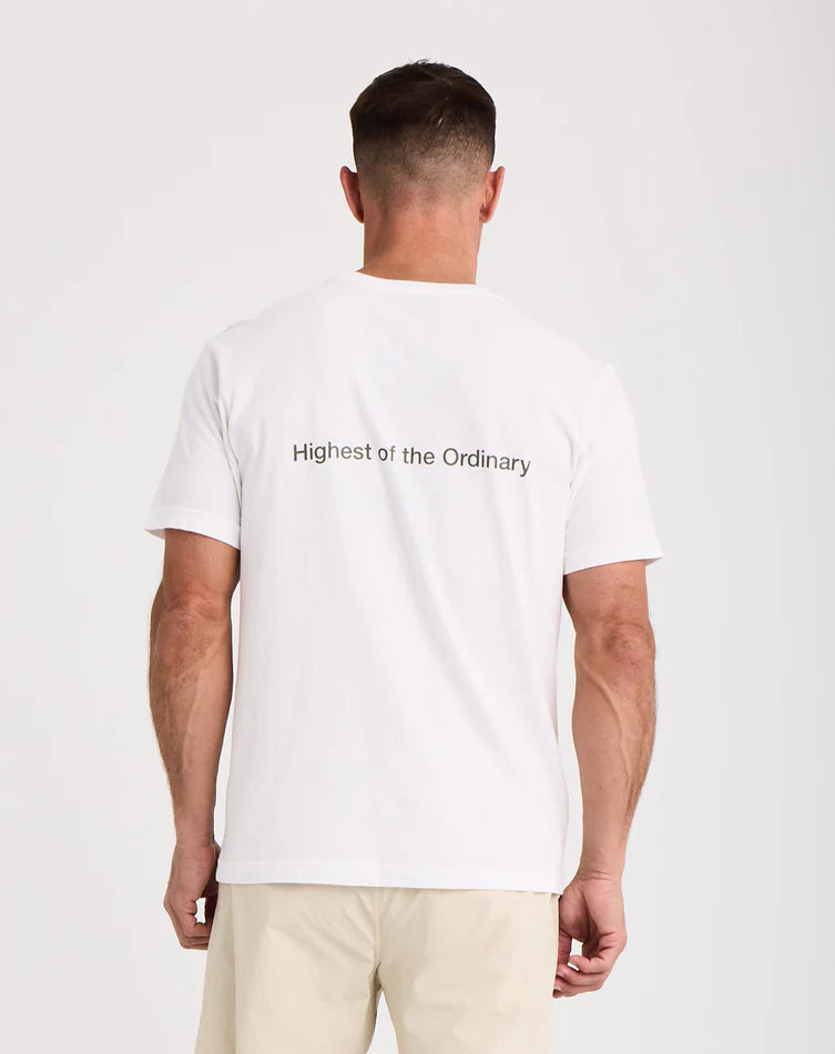 'Highest of the Ordinary' garment dyed short sleeve shirt. Made with extra fine, extra soft 30/1 light weight cotton yarn.