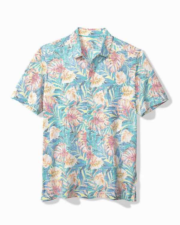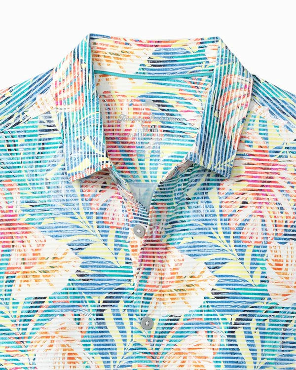 Tommy Bahama's moisture-wicking, UPF-rated tech fabric with a unique seersucker texture inspires a trendy button-down with a tropical state of mind—and just enough stretch.