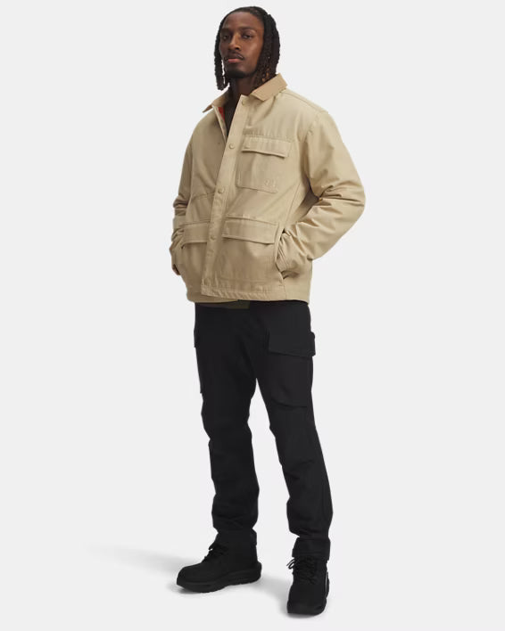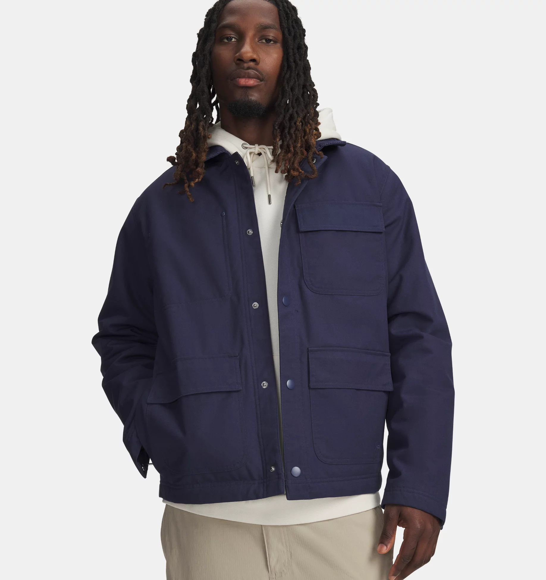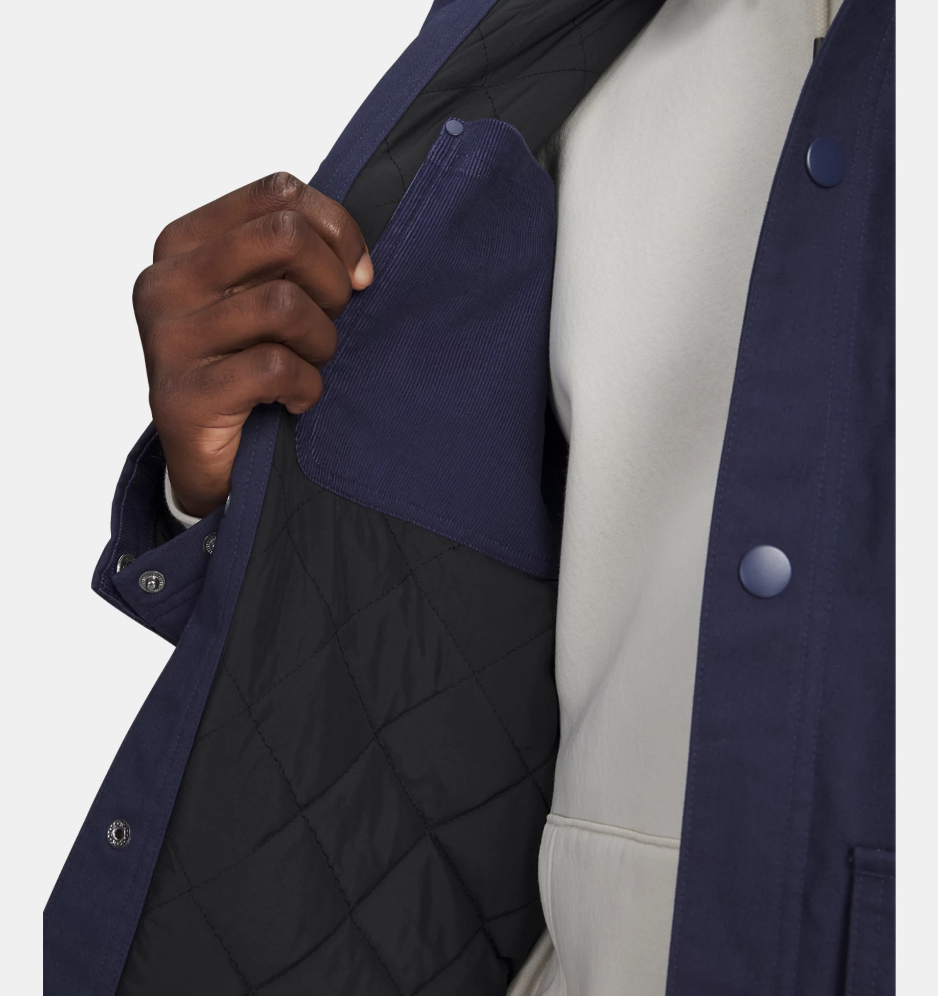 The water-resistance and light insulation of a jacket, with snap front closures and the finished look of a shirt.