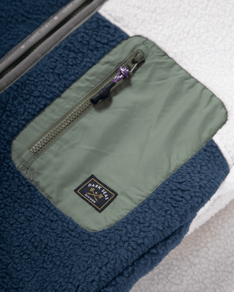 Stand out in the elements. The Aliso Sherpa is built from brushed poly fleece with an asymmetrical nylon chest panel, mesh-lined hood, and reinforced forearms.
