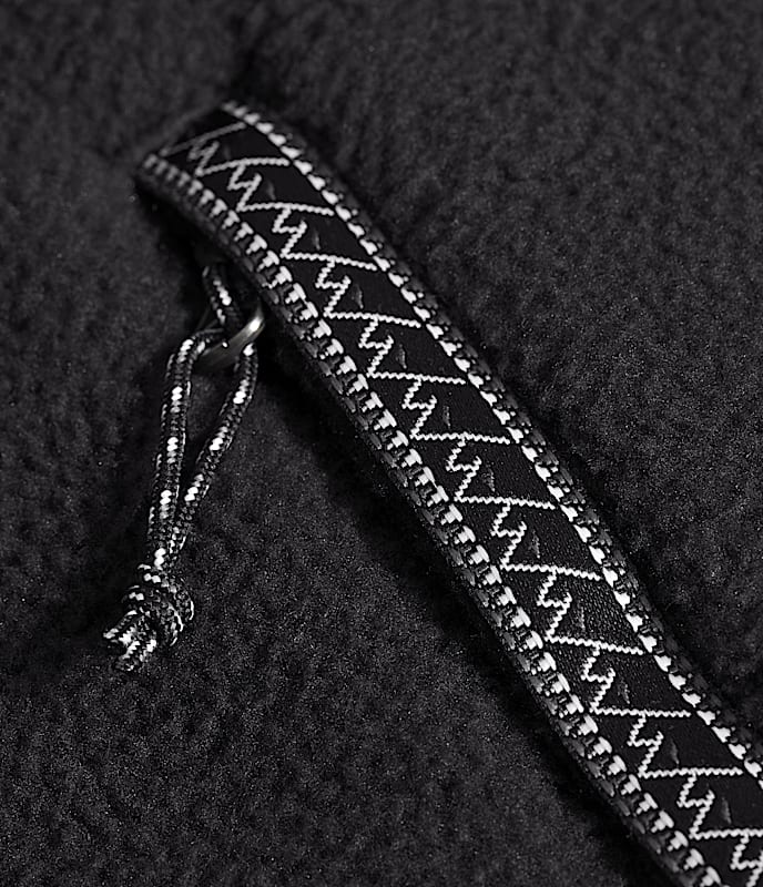 - Patterned jacquard-tape trim on center front zip and hand pocket openings