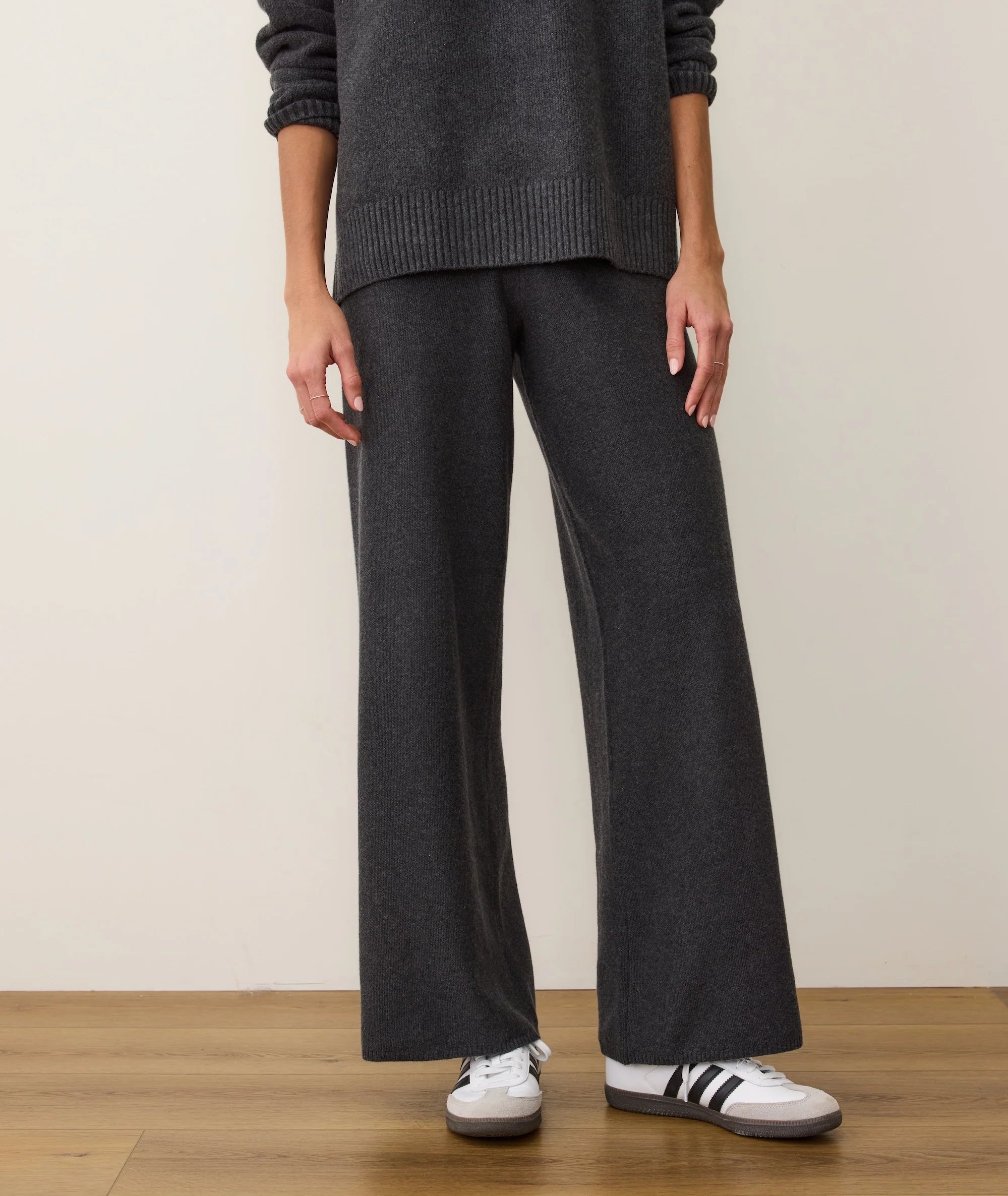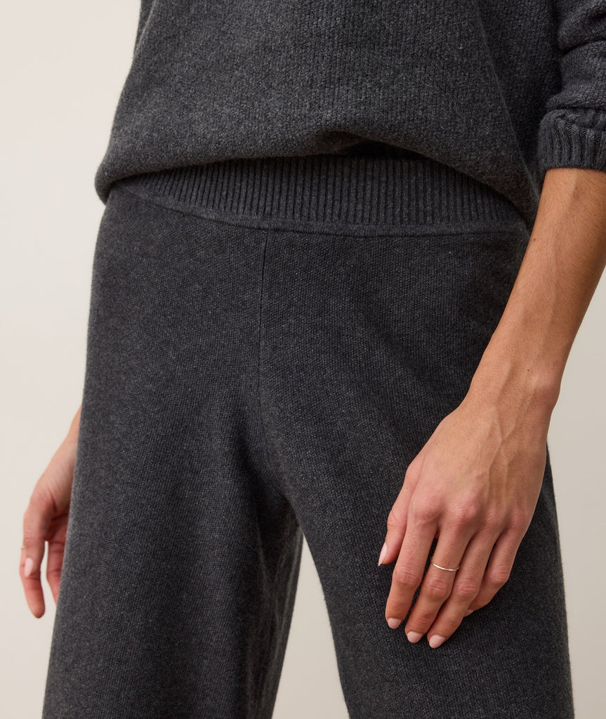 This knit pant is the bottom half of our amazingly elegant Chalet Knit set. Sleek and sophisticated, but relaxed with an elastic waist and laid back wide leg. It's the best of lounging and luxury together in one pant, with a little extra emphasis on the luxury. And when you pair it with the matching Chalet Knit hoodie? Well, people are going to start to think you own the place.