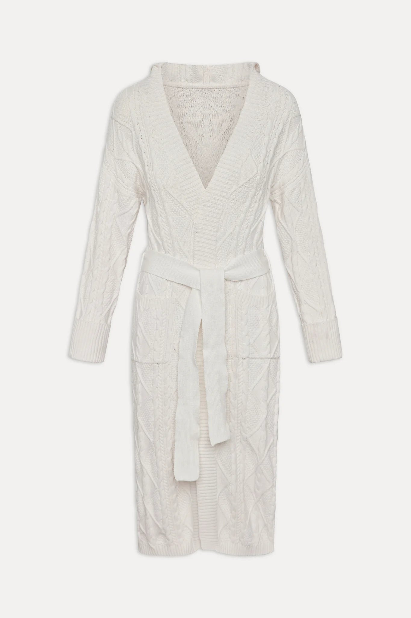 Designed in our 100% cotton knit with a new cable pattern woven throughout. Its floor-grazing length gives it the drama of a true duster. Slip it on for a stroll through falling leaves or layer it fireside.