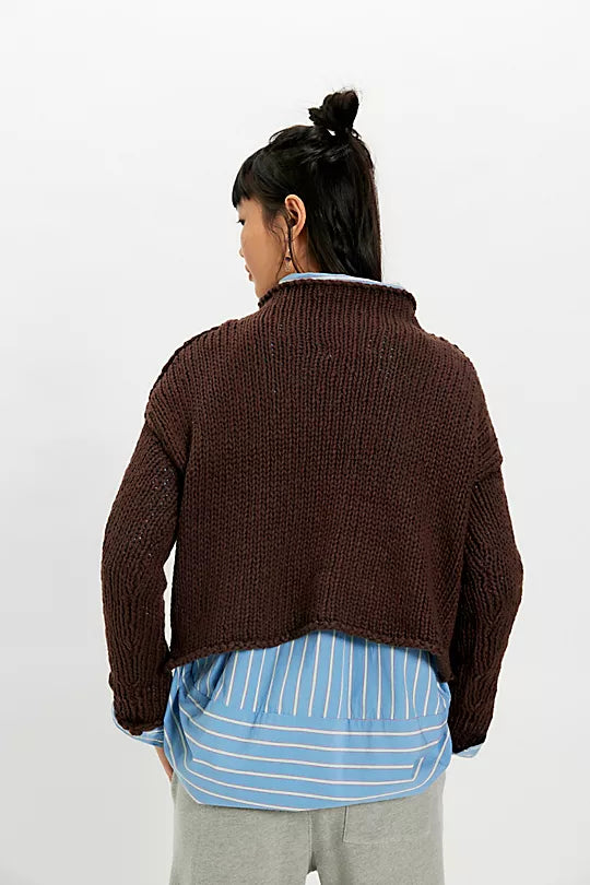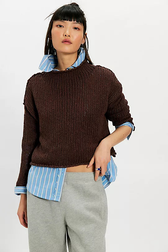 So light and perfect for any-season layering, this staple sweater is featured in an airy cotton knit with a rolled neckline and dropped shoulders for that laidback look.