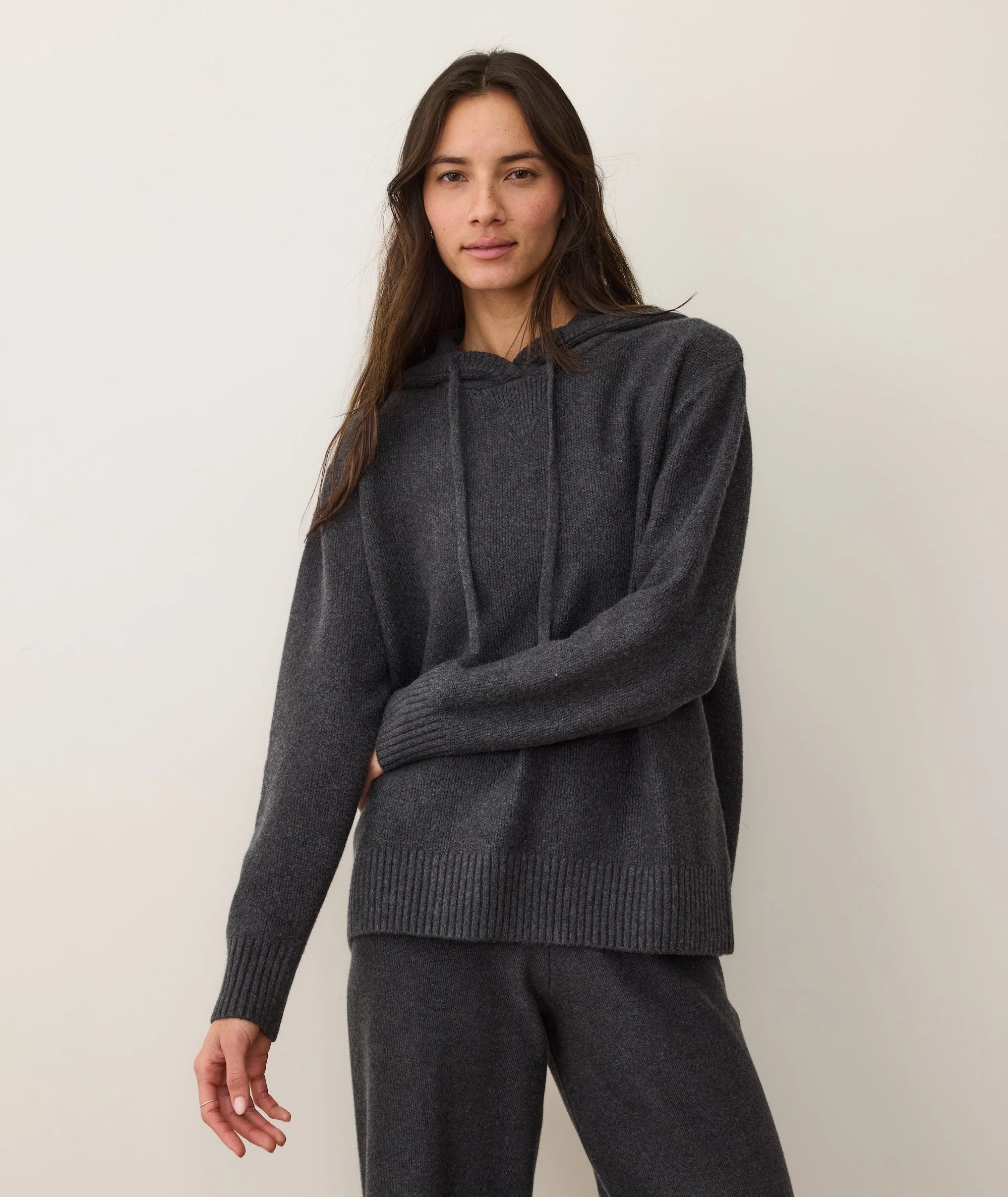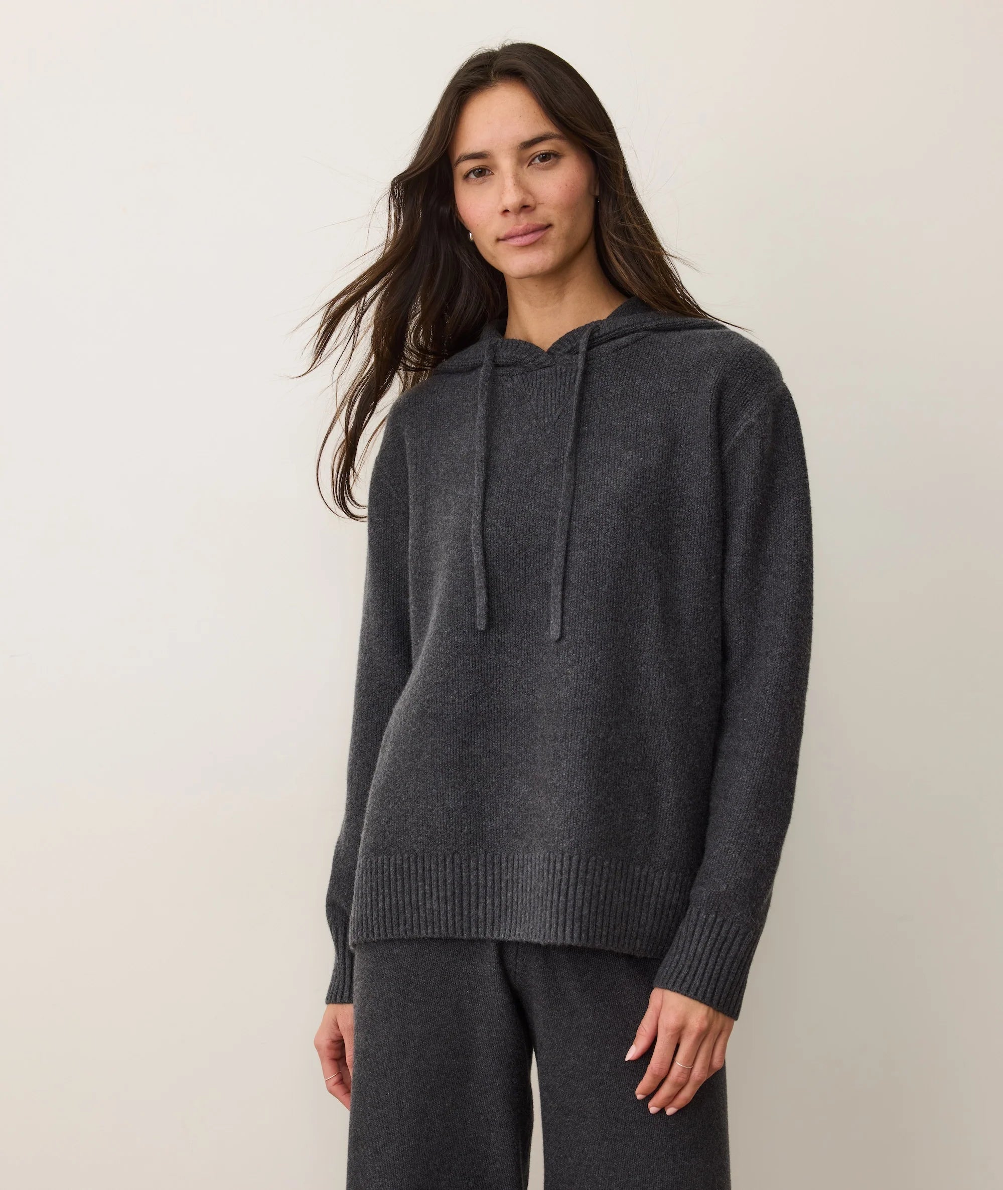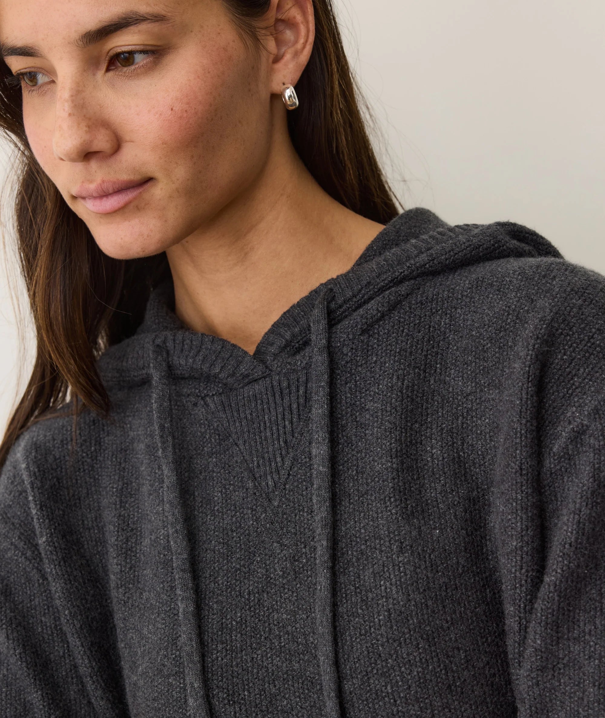 Say hello to the top half of our new, amazingly elegant knit set. No joke, you will put this on and automatically expect someone to refill your drink in a chalet. That's basically how it got its name. Of course it also happens to be an elevated sweater hoodie that brings class and cuteness to nights in or days out. But our eye's set on the full set. And for someone to refill this champagne…