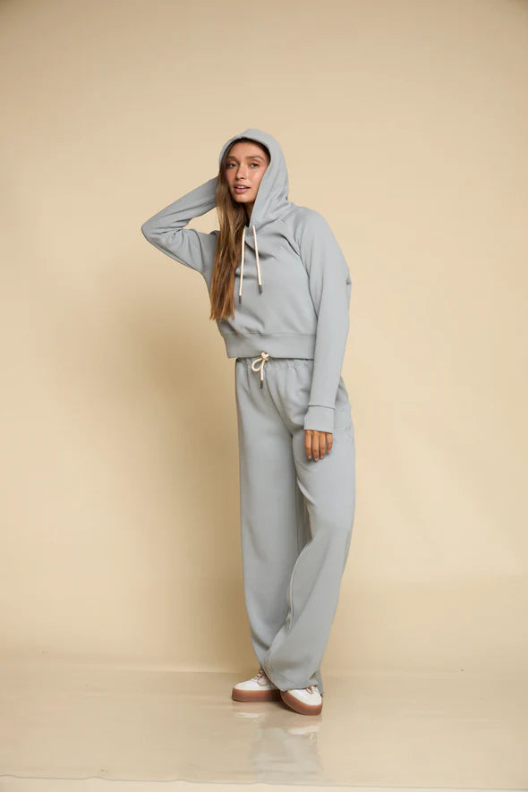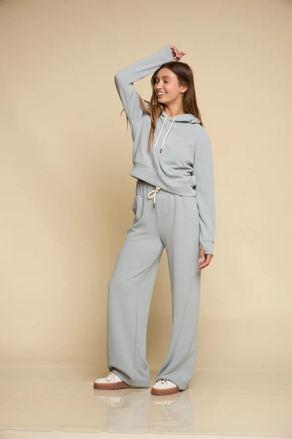 The Later On Ribbed - Women’s Pullover Hoodie in limestone blends relaxed comfort with a polished edge. With raglan sleeves, thumb hole cuffs, and a drawcord hood, it’s designed for versatility — whether worn casually or styled for a chic layered look.