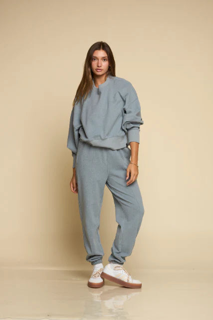 The Maverick - Women’s Sweatpant in limestone combines softness with flattering design details for everyday wear. Featuring elastic waist and cinched cuffs, functional pockets, and center seams, these sweatpants are both comfortable and polished.