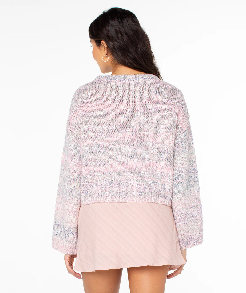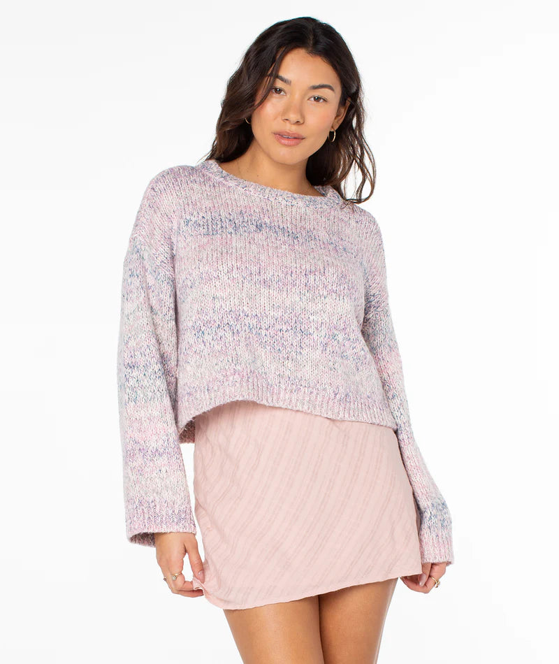 Winter warmth with salt-kissed soul, the Swell Season sweater is a perfectly subtle statement for your rotation. Featuring a soft pink and purple wash and a cropped fit, this piece is effortlessly flirty and feminine while staying comfy and cozy.
