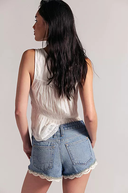 We The Free’s signature micro Cali cut-offs, now with a little lace trim for a femme finish.