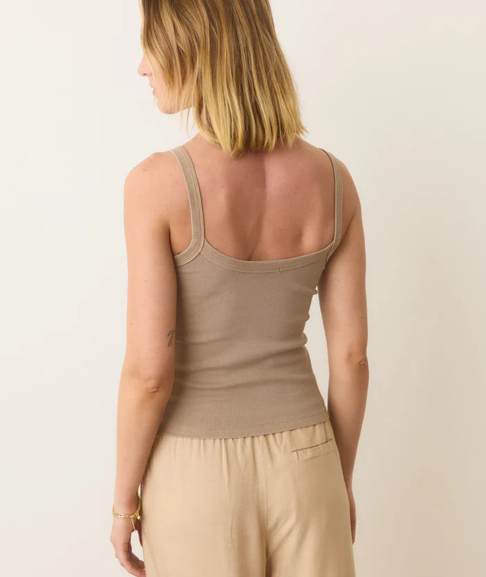 Here she is—the cami that goes with everything. This style has been garment dyed for a naturally sun-faded, broken-in look and feel. The fit? It's a perfect, flattering scoop neck with subtle crop. It's absurdly soft, comfortable, and has a great thick texture. Perfection? We'd like to think so.