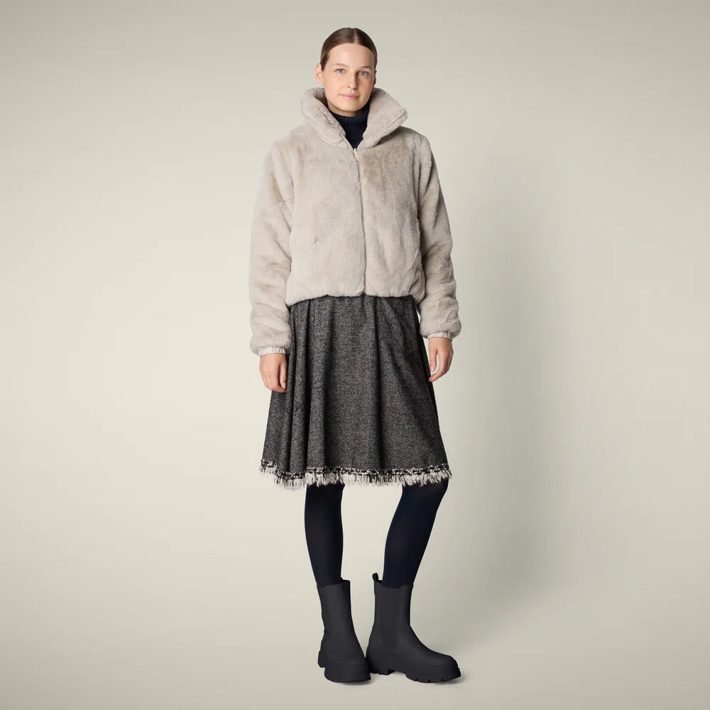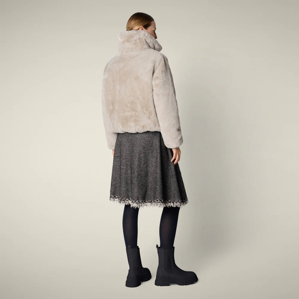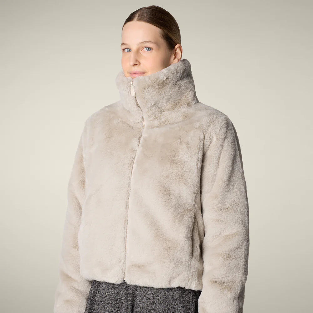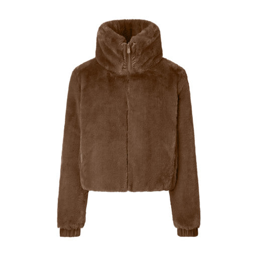 Made from soft faux fur, the Jeon model women's jacket lets you display your wild side while still respecting animals. The design features details like a high neck, zipped front and an elasticated hem. A reversible design, it has a quilted finish visible on one side.