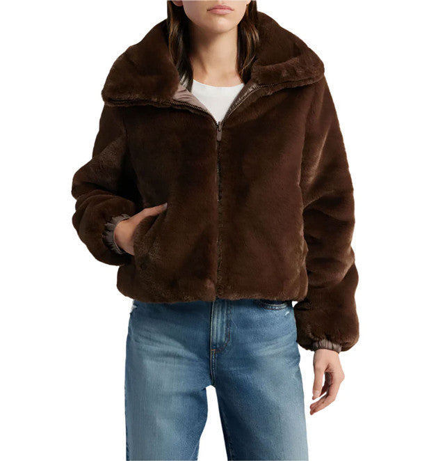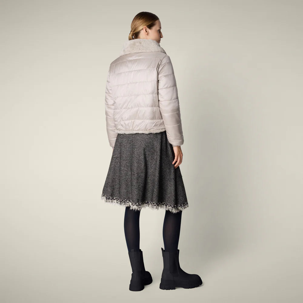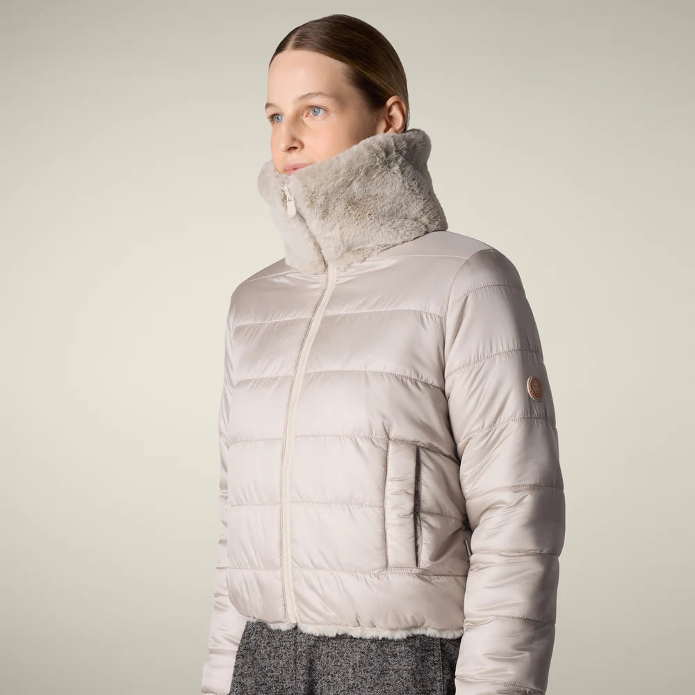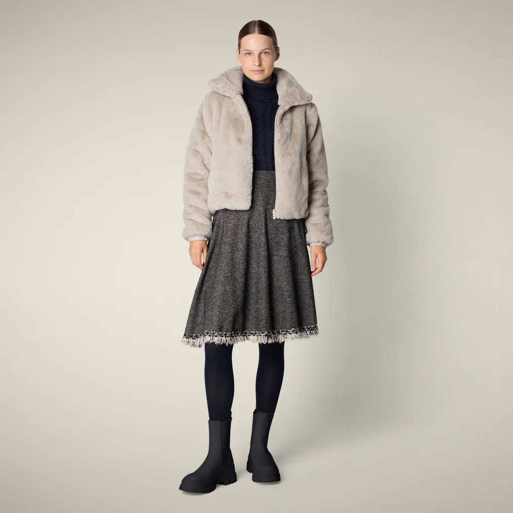 Made from soft faux fur, the Jeon model women's jacket lets you display your wild side while still respecting animals. The design features details like a high neck, zipped front and an elasticated hem. A reversible design, it has a quilted finish visible on one side.
