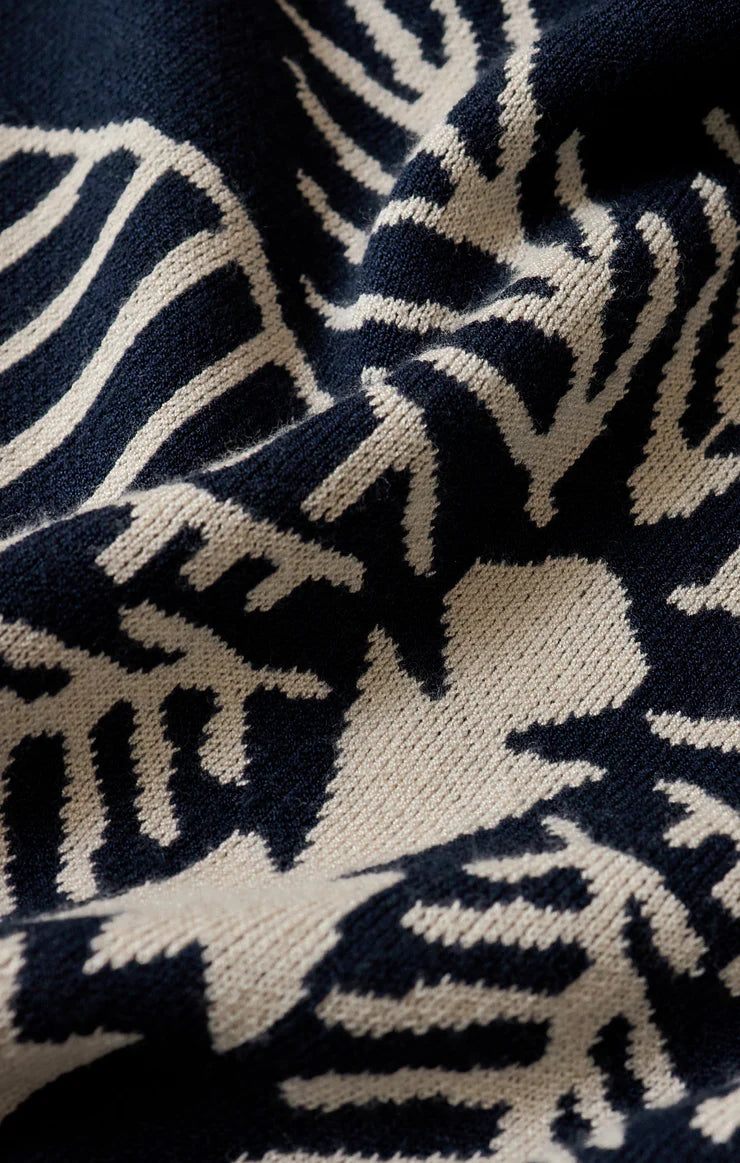 Soft sweater knit meets a sleeveless midi silhouette with a palm print that feels like vacation. Finished with a back slit and midweight feel, it’s made for breezy nights and easy travel