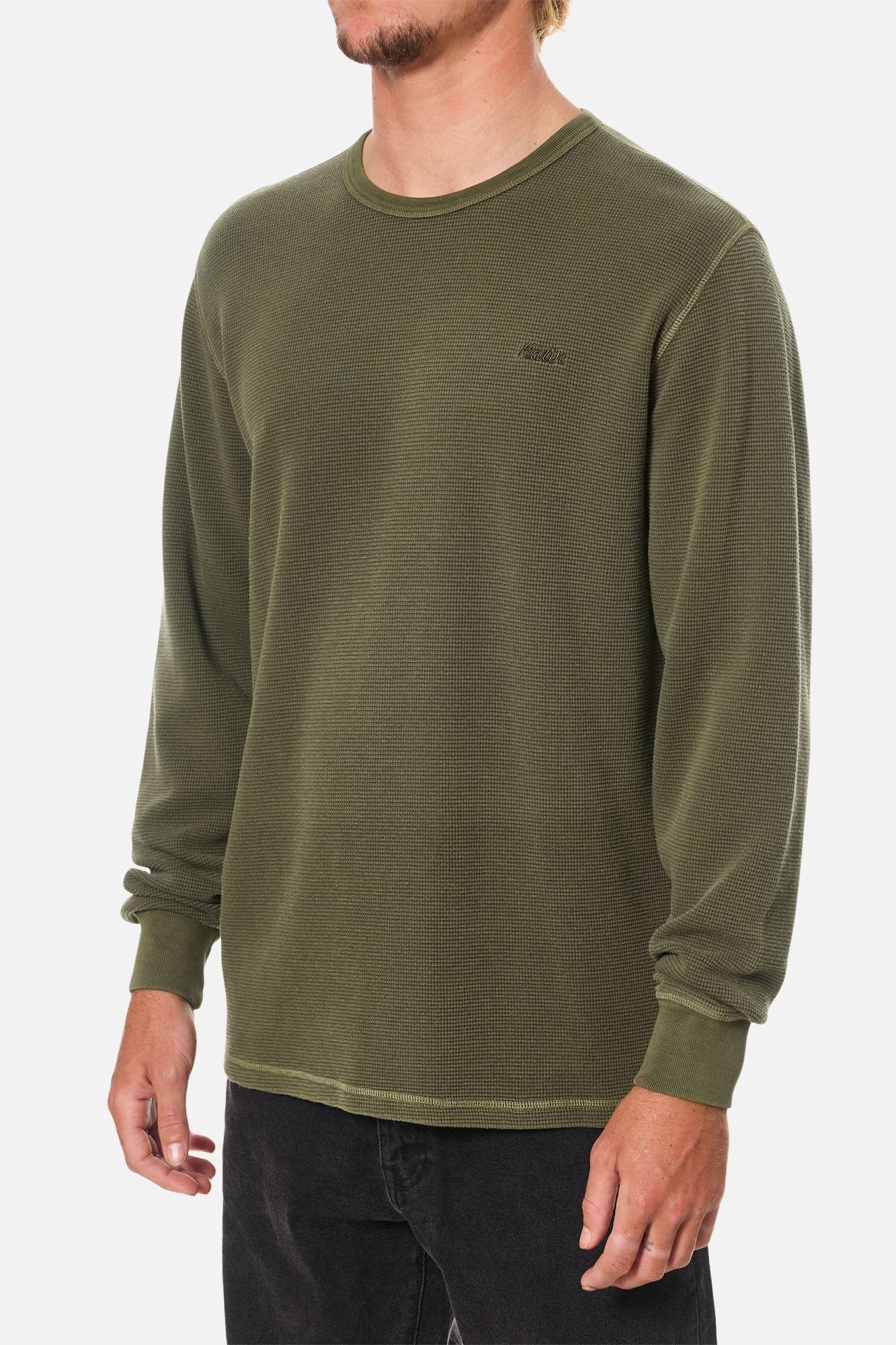 The Therman Thermal is our version of the classic long-sleeved men's thermal. It is made from a cotton-polyester waffle knit.